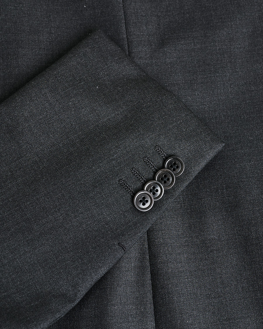 • Dobbeltknappet jakke med to forlommer, en brystlomme og to pipede inderlommer.