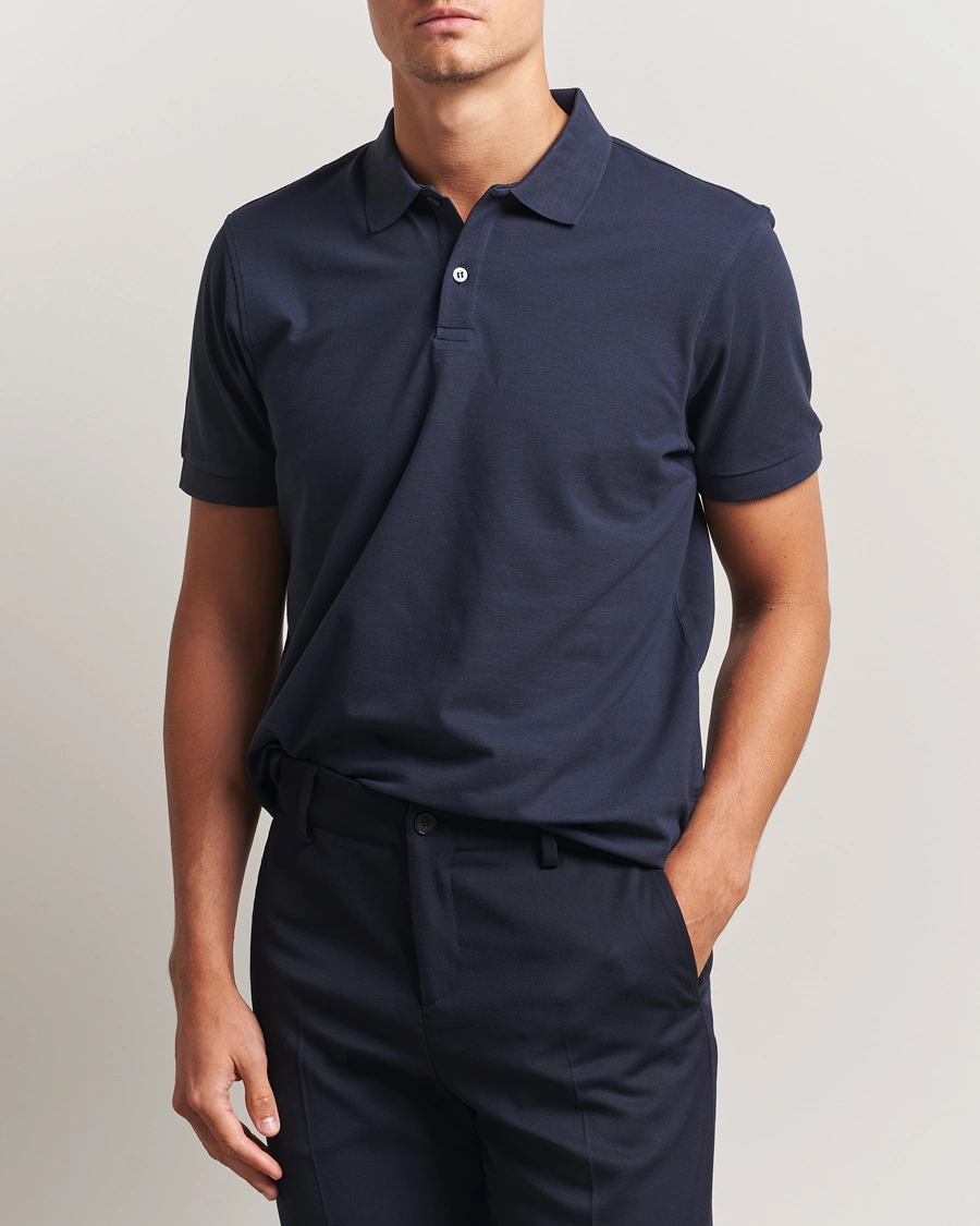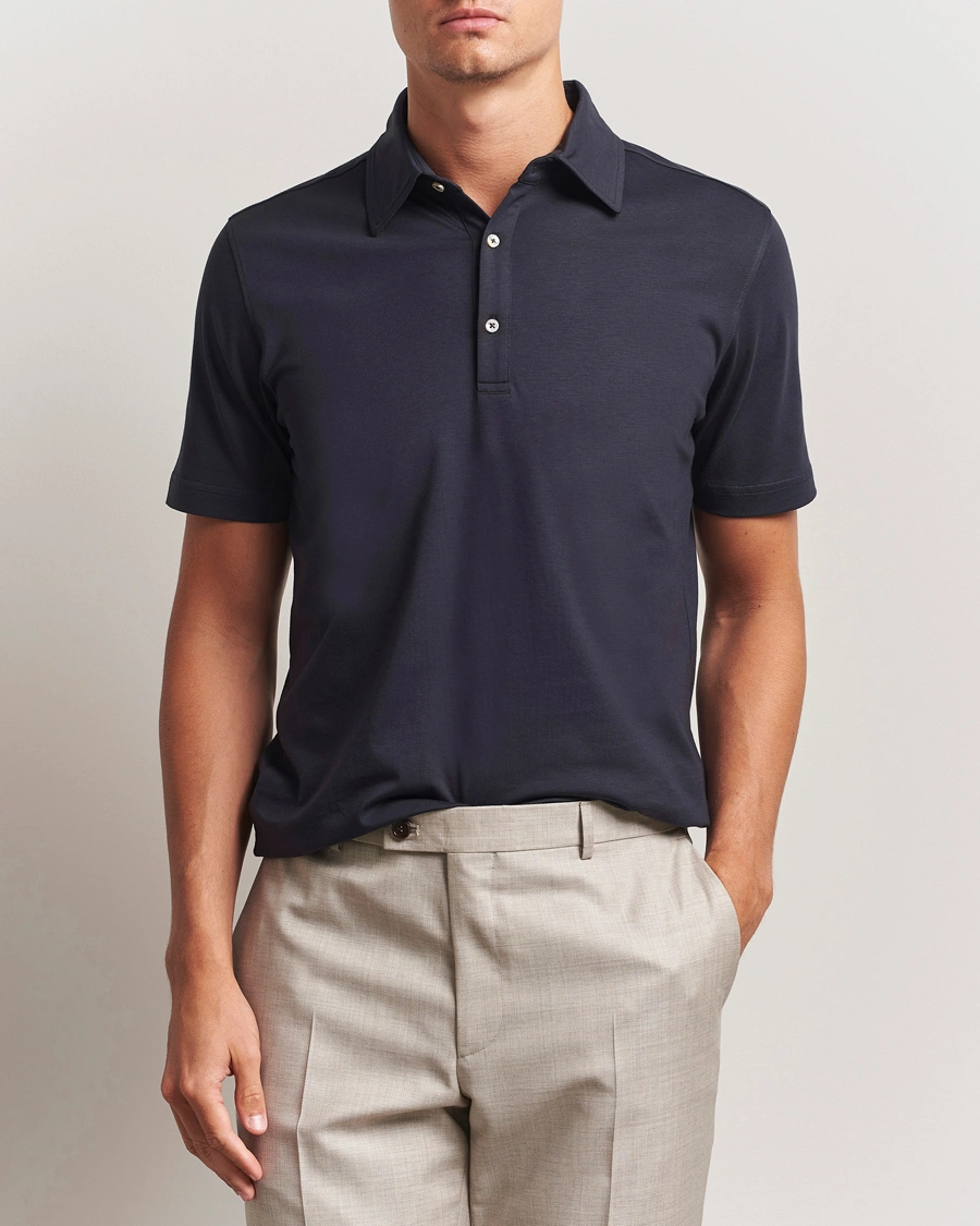 From Sweden's Stenströms, we have selected a classic dark blue polo shirt. This one comes in a thinner plain knit linen quality which is perfect for the days between summer and autumn when the temperature can remain high. The buttons in mother-of-pearl give an extra exclusive feeling.