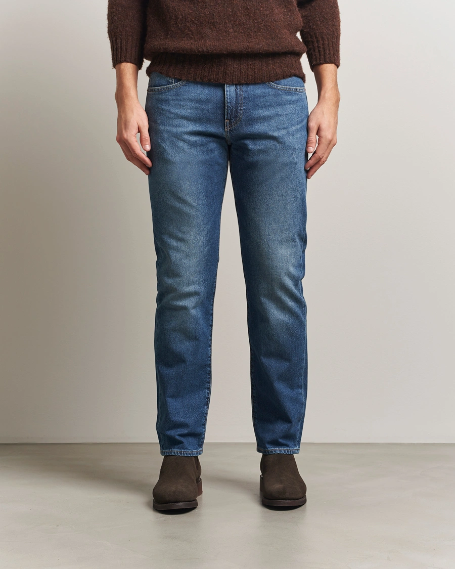 The model has a unisex fit with a slimmer silhouette, which also contributes to more pronounced fades at the knees and front of the thighs. For those who appreciate natural fading and have the patience to wear the jeans for several months before washing, this is the perfect choice. The jeans are made from high-quality Japanese denim.