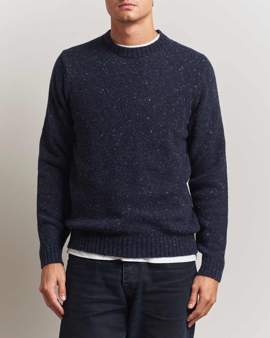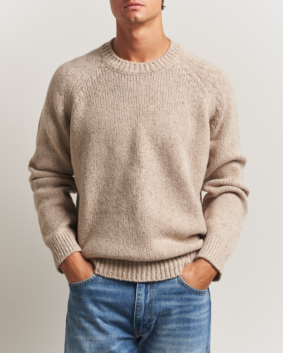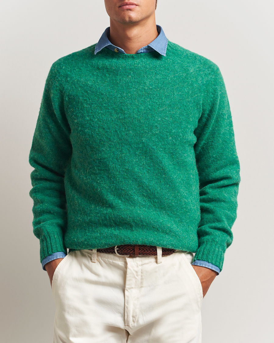 This yellow knitted sweater from Howlin' can effectively enhance an outfit by adding a vibrant and playful pop of colour. The traditional craftsmanship in brushed Scottish virgin wool gives the sweater a unique feel and quality. When styled with brown corduroy trousers, brown brogues, and a wool blazer, it creates an interesting contrast between the casual and the elegant, with a nod to the 1970s. The colourful sweater makes the combination stand out, and together with the soft, earthy tones, the garments form a perfect combination for autumn.