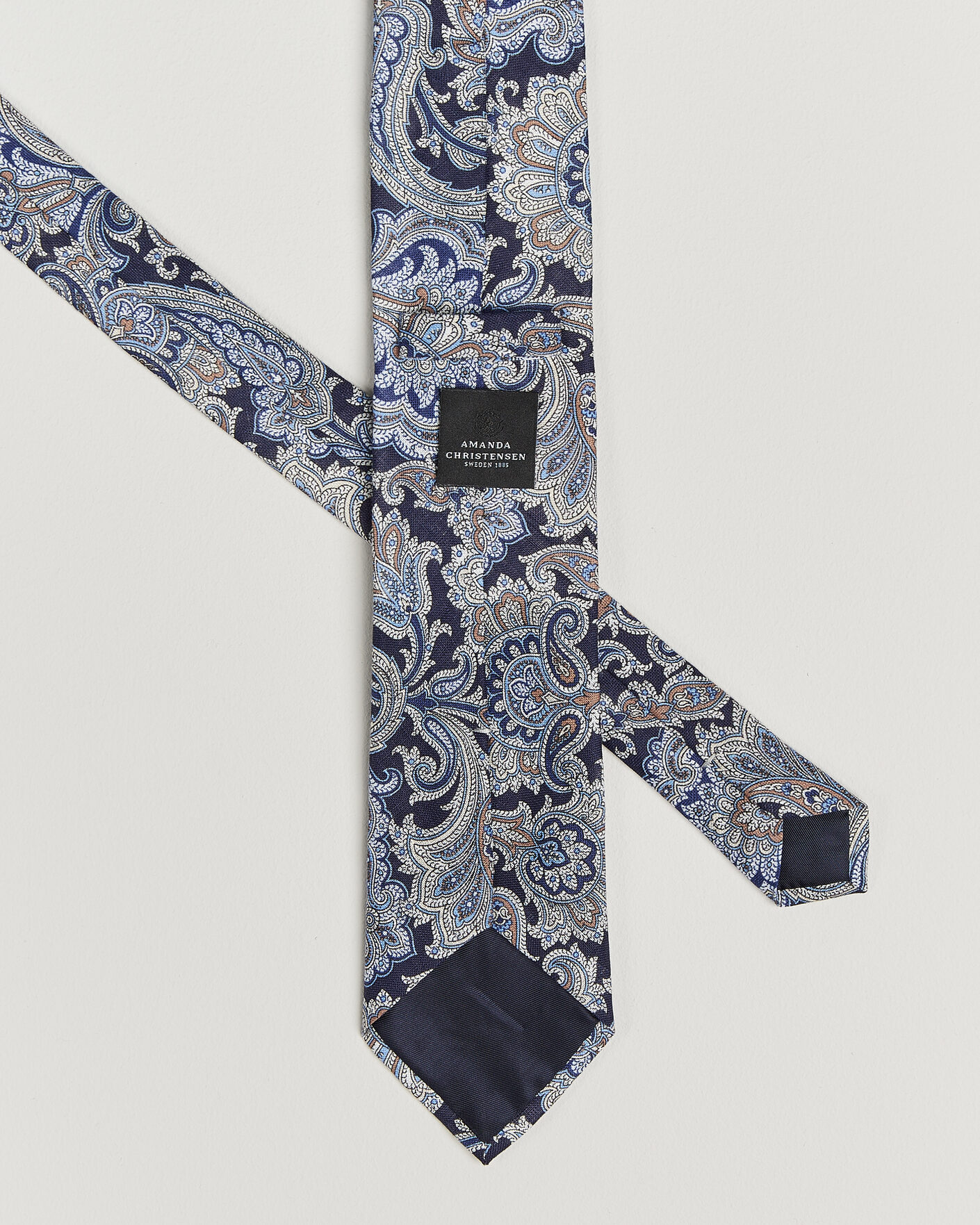 Amanda Christensen er Sveriges førende brand for herreaccessories og har siden 1885 leveret klassiske, veltilpassede beklædningsgenstande til den moderne gentleman. Da grundlæggeren Amanda Christensen begyndte at fremstille butterflys og cravats i Stockholm i slutningen af 1800-tallet, blev fundamentet lagt til en arv af tidløs stil og højeste kvalitet. Siden 1949 har virksomheden været kongelig hofleverandør og tilbyder i dag slips, tørklæder, lommetørklæder, sokker og manchetknapper – detaljer der forstærker personligheden og stilen hos bevidste mænd verden over. En stor del af produktionen finder sted omkring Comosøen i Italien, hvor håndværket er blevet bevaret gennem generationer.
