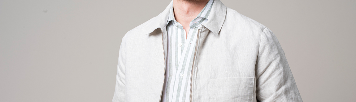 Oscar JacobsonFaldo Diagonal Linen/Tencel Tuxedo White