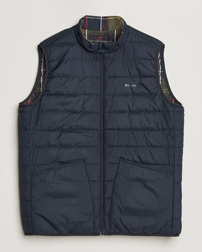 - Vendbar vest med ensfarvet på den ene side og mærkets karakteristiske tartanmønster på den anden. Et alsidigt design, der giver to looks i én beklædningsgenstand.