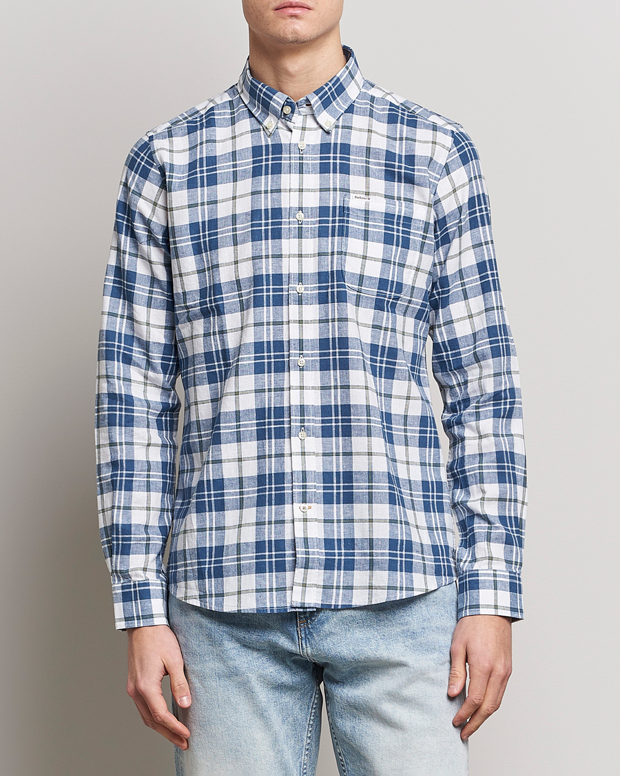 Tailored Fit Thorpe Cotton/Linen Checked Shirt Blue