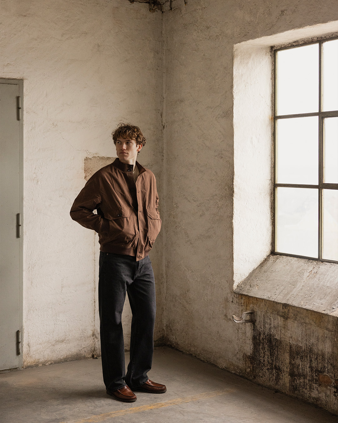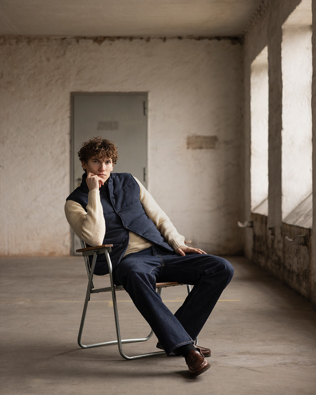 Denne brune variant føles blød og let isolerende uden at blive tung. Kombiner den med en hvid kabelstrikket sweater, lige jeans og læderloafers eller minimalistiske sneakers for et afslappet men velovervejet sæsonlook.