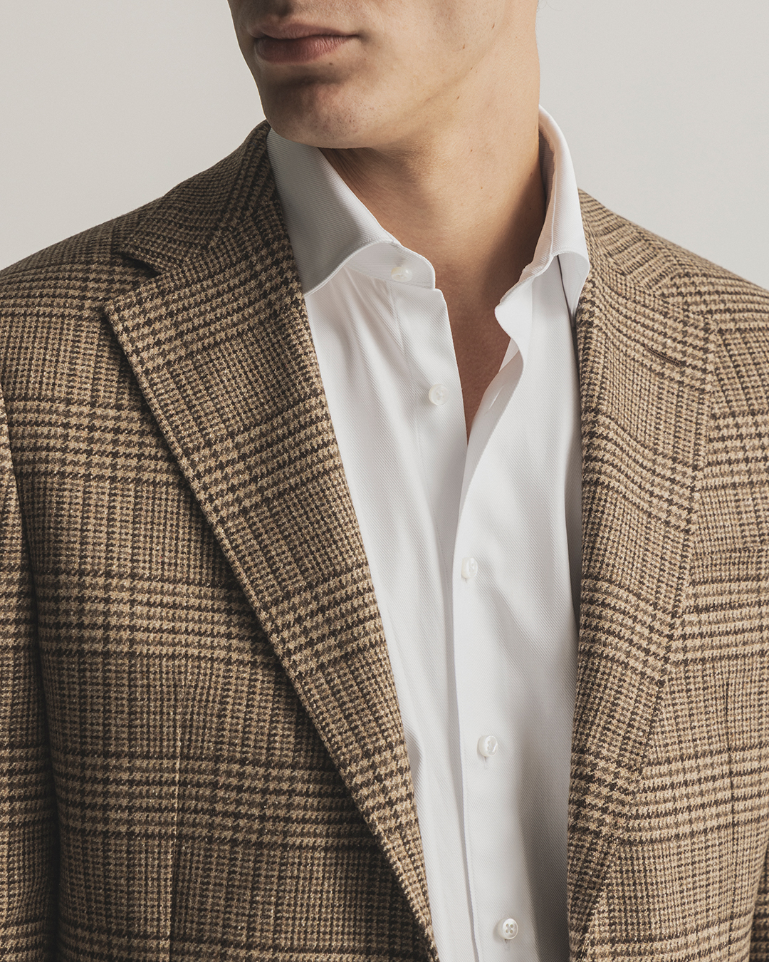 Skjortor kan verka enkla vid första anblicken – ett tyg, en krage i olika former, knappar framtill och en klassisk manschett. Men bakom en skjorta av hög kvalitet döljer sig betydligt mer. Den bygger på genomtänkta val: ett tyg vävt av fint och högkvalitativt garn, en krage med stabil konstruktion samt sömmar som är noggrant placerade och sydda med precision. Varje detalj spelar in: från hur knapparna är fästa till passformskonstruktion och hur mönster passats kring sömmar och detaljer. Allt detta spelar en avgörande roll för hur skjortan åldras, känns och håller över tid.