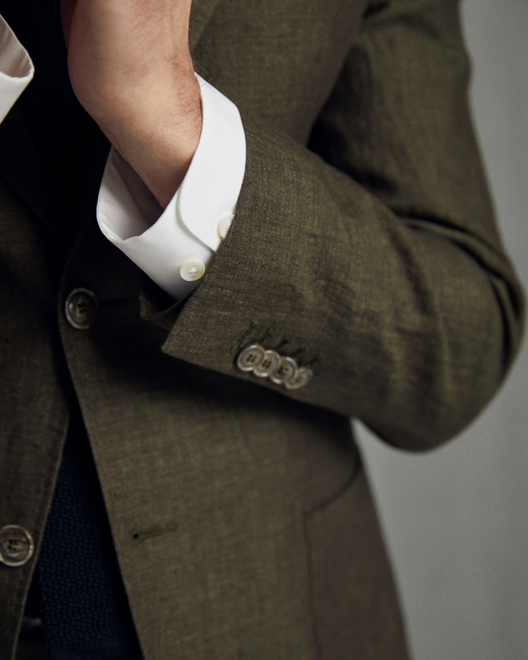 Jakkesættet skal helst være af en lidt mere uformel type i afslappede farvetoner såsom grøn, lyse blå eller grå toner samt brun. Det kan være lavet af hør, bomuld, uld eller flannel. Hvis du har lyst, kan du vælge en mønstret udgave, i modsætning til dresscoden mørkt jakkesæt, hvor jakkesættet skal være mere formelt og gerne ensfarvet eller blot diskret mønstret.Skjorten