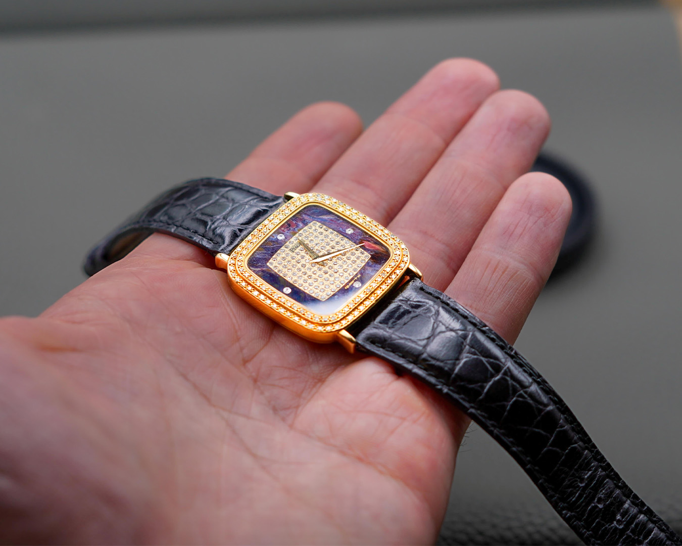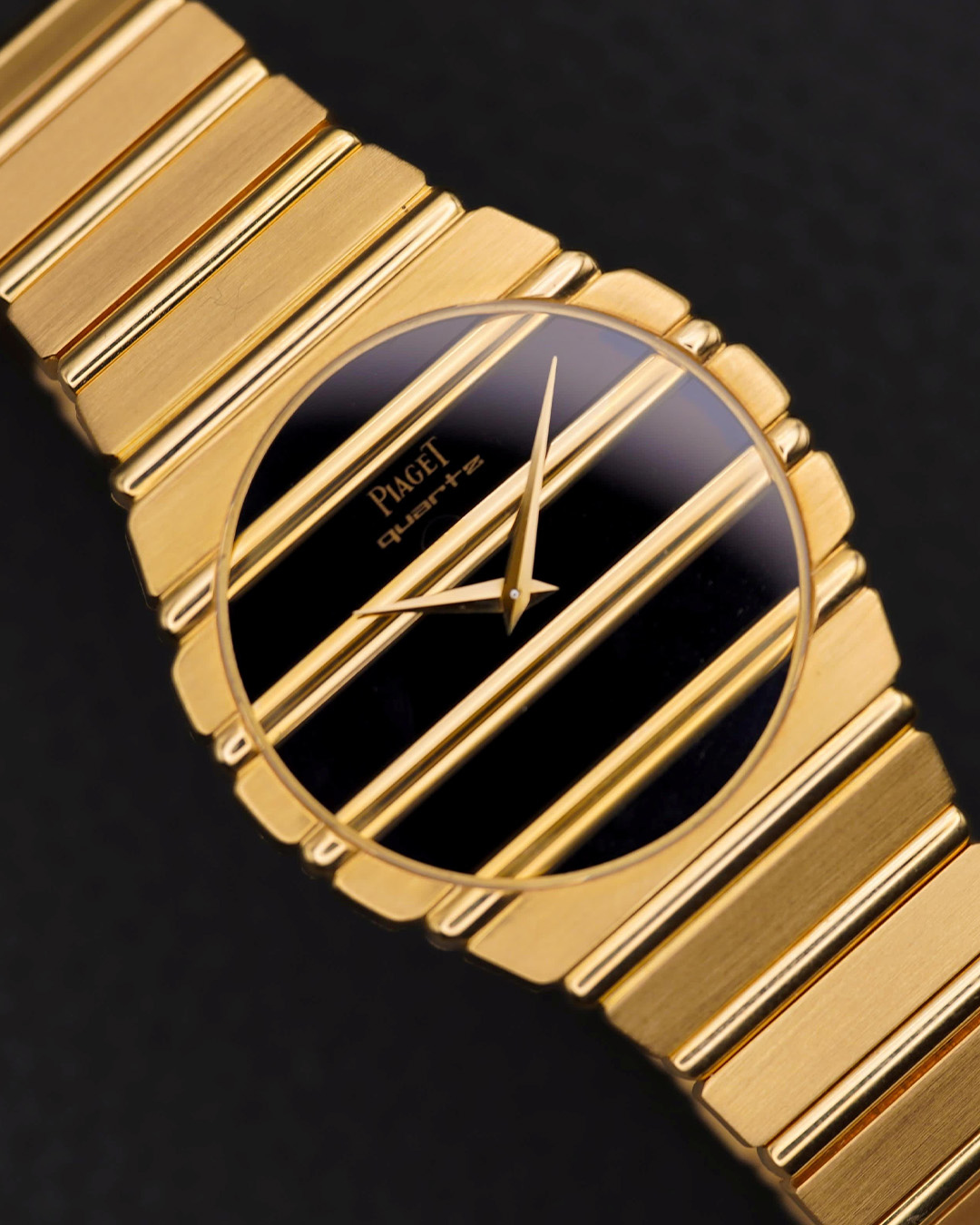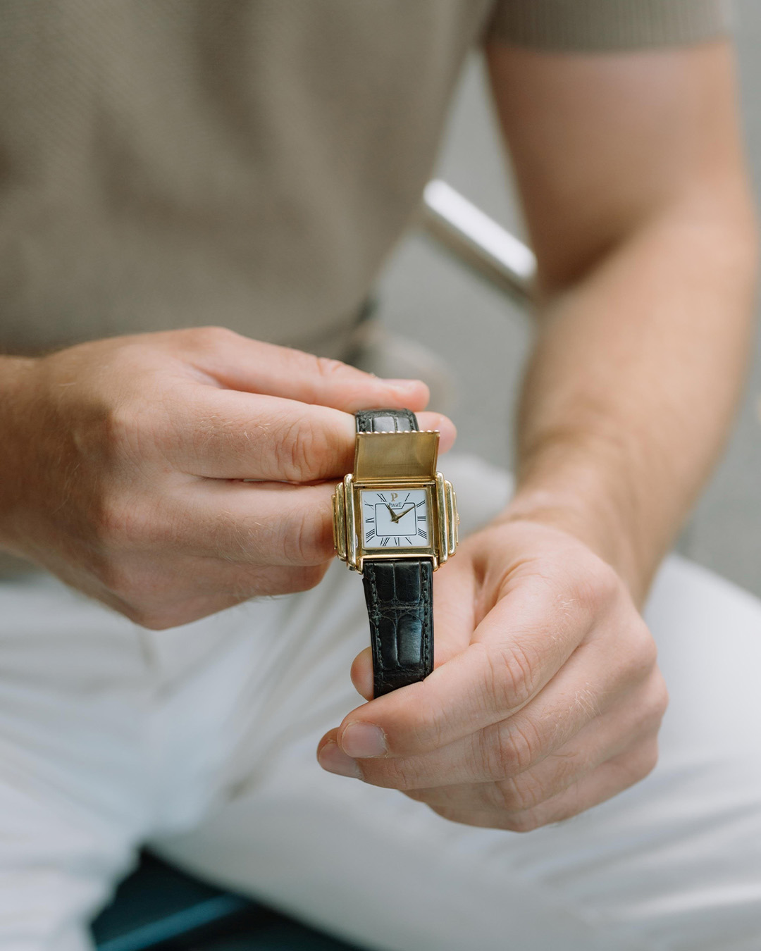 – Det var en Polo i helguld. Fra tidligt 80'erne, siger han. Jeg søgte ikke engang efter en Piaget, men da jeg så de horisontale guldlinjer, der fortsatte fra leddet lige ind på skiven… Der begyndte det hele.