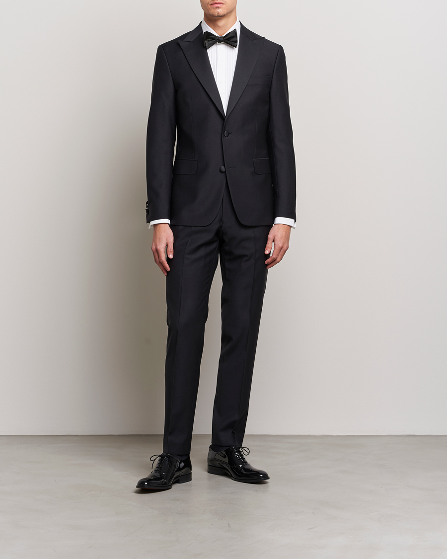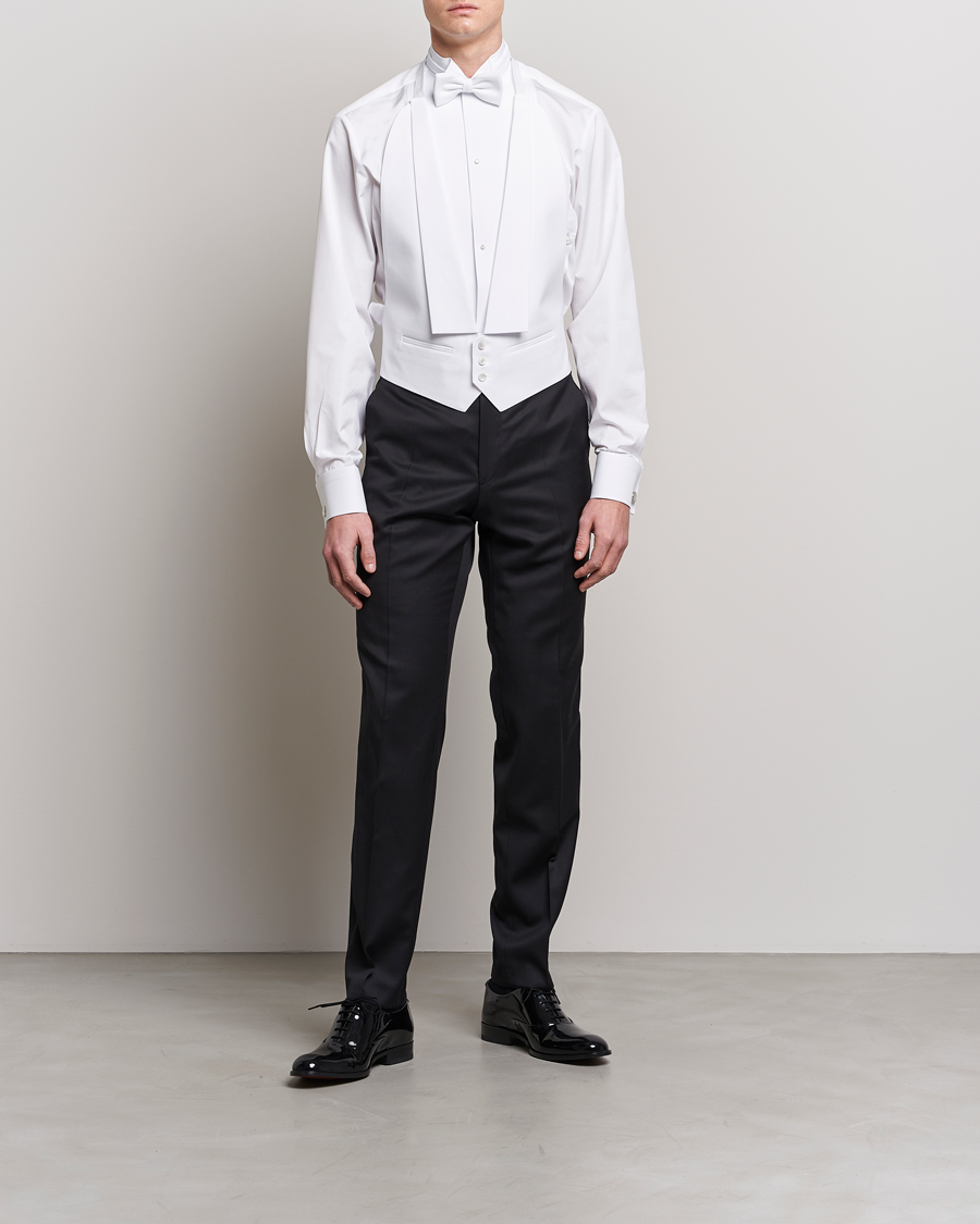 Custom Fit Tuxedo Shirt Black Ribbon White