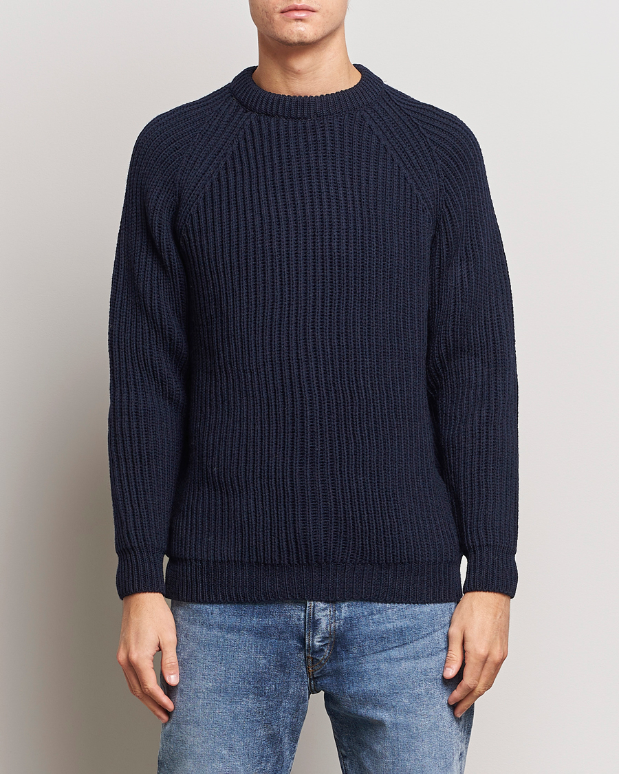 Fisherman Rib Chunky Wool Crew Neck Navy