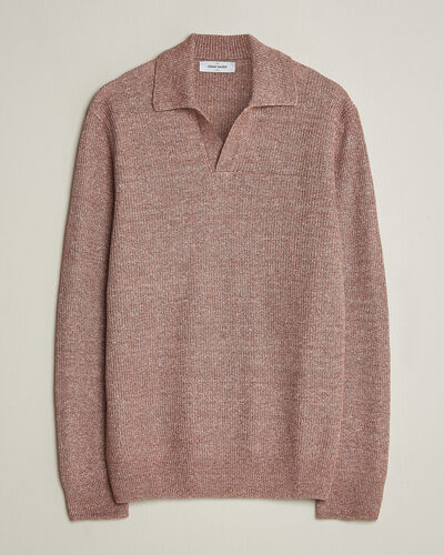 Linen/Cotton Open Collar Knitted Polo Rust Melange