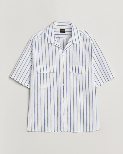 Striped Short Sleeve Linen Shirt Navy/White