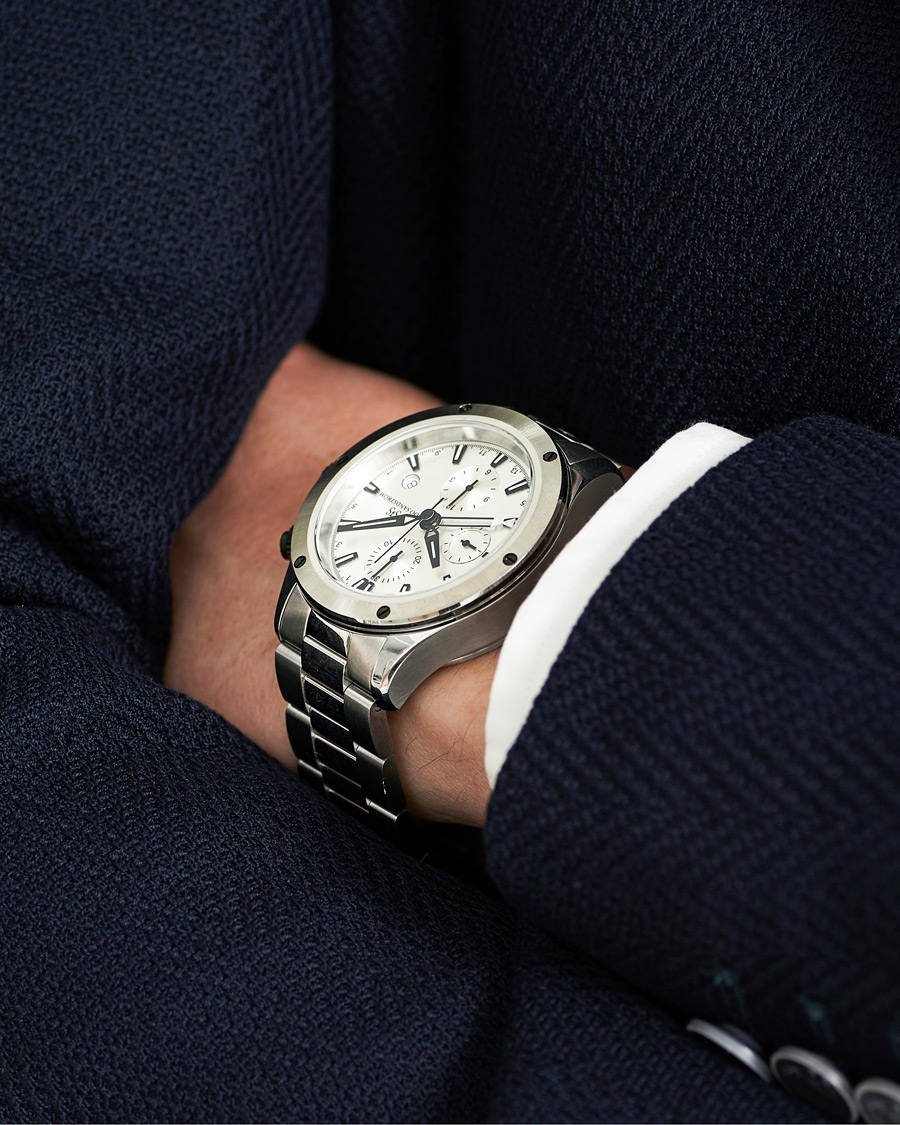 • Til forskel fra sit forbillede Royal Steel Chronograph viser denne model en ekstra tidszone.